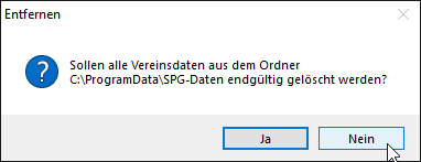 2. Deinstallieren Sie dann SPG-Verein 4. Wählen Sie dann bei der Installation das der Datenpfad nicht gelöscht werden soll.