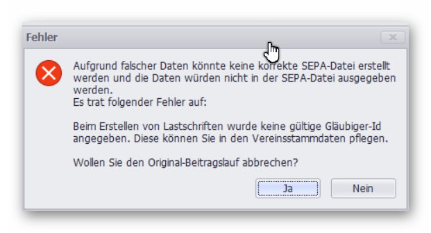 Beim Versuch, eine Beitragserhebung durchzuführen, kommt eine Fehlermeldung, dass keine SEPA-Datensätze erstellt werden können. Im Mitgliederbestand sind aber nur Rechnungszahler und ich habe kein SEPA-Mandat eingerichtet. Muss ich jetzt bei jedem Mitglied einzeln den Beitrag ins Soll stellen?. Hat jemand eine Idee? Anke HGV