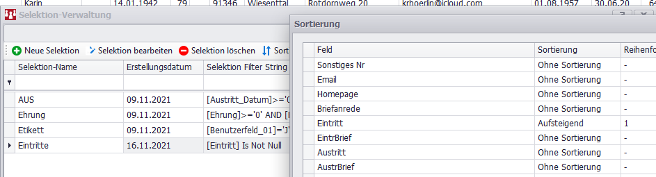 Das geht nicht, auch nach der Eingabe der Sortierung nach Eintritt, kommt die Liste nicht aufsteigend nach Eintrittsdatum raus.