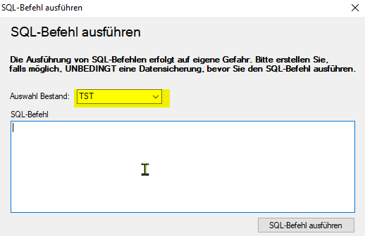 Dort klicken Sie bitte auf den Button "SQL-Befehl ausführen"