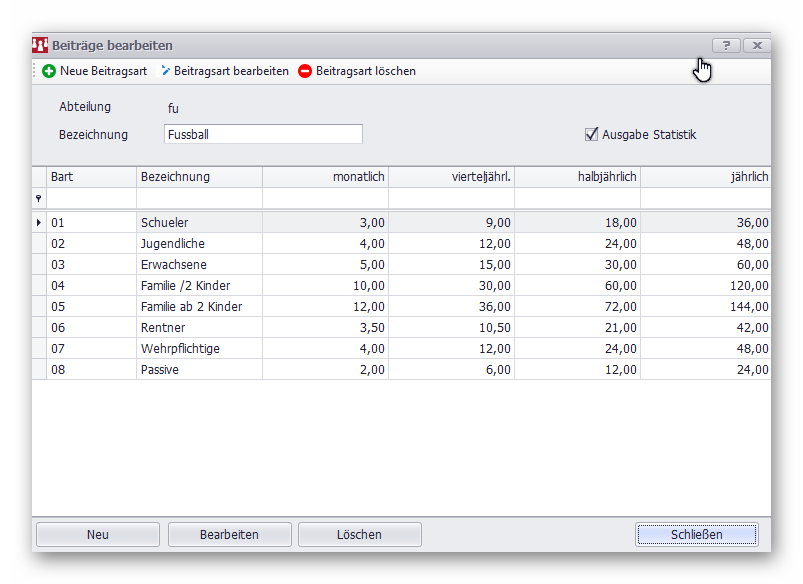 haben Sie unter "Beitragsarten" auch die "Beiträge" bearbeitet??? (siehe Anhang)