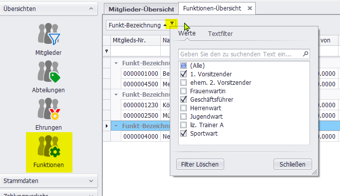 Was muss ich tun, das auf meiner Liste aber nur genau diese Funktion am jeweiligen Mitglied angezeigt wird?