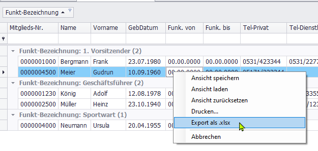 Der Reportgenerator kann nicht auf diese Information zugreifen. Die Selektion stellt dem Report nur die gefilterten Mitgliedsnummern zur Verfügung.