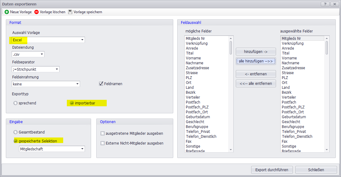Vielleicht wäre eine Selektion der betroffenen Mitglieder und der importierbare Export hilfreich: