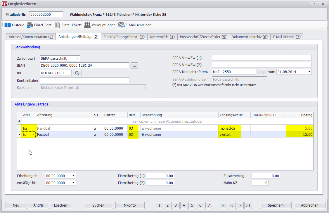 Mit einer Export_Datei hatte ich ausprobiert, damit ich alle wichtigen Felder hatte. Leider ohne Erfolg.Mit den Nullen war mir auch aufgefallen, ich hatte jetzt in einem neuen Test-Bestand Abteilungen und Beitragsarten ohne Nullen angelegt, aber hat auch nicht funktioniert oder muss man zwingend mit 01/02 anlegen?
