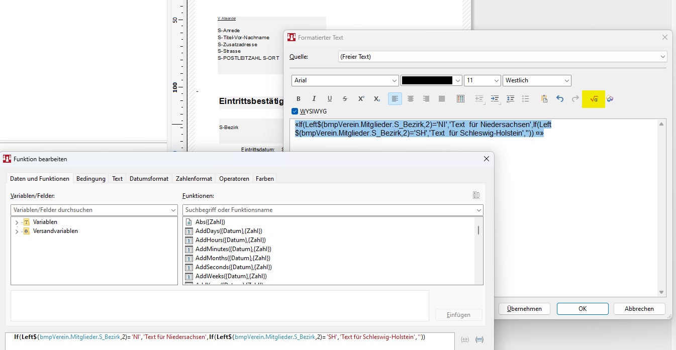 If(Left$(bmpVerein.Mitglieder.S_Bezirk,2)='NI','Text für Niedersachsen',If(Left$(bmpVerein.Mitglieder.S_Bezirk,2)='SH','Text für Schleswig-Holstein',''))