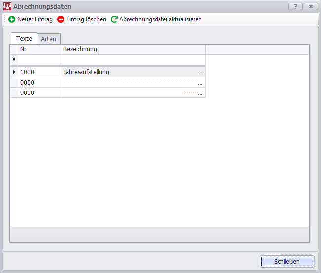 Sie können Änderungen an den Abrechnungstexten vornehmen. Durch Doppelklick auf einen Abrechnungstext gelangen Sie in das Bearbeitungsfenster für den Abrechungstext.