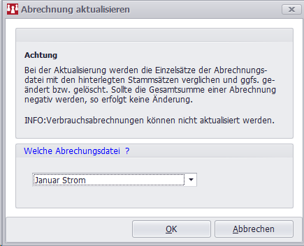Bitte beachten Sie den Hinweis, dass Verbrauchsabrechnungen nicht aktualisiert werden können.