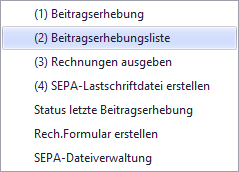 Unter der Funktion [Beitragsverfahren] sind folgende Bereiche realisiert: