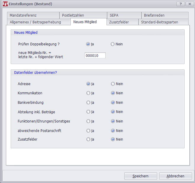 Sie können Einstellungen vornehmen, die beim Erstellen eines neuen Mitglieds gelten sollen.