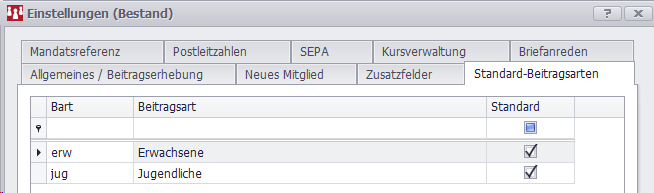 Standard-Beitragsarten