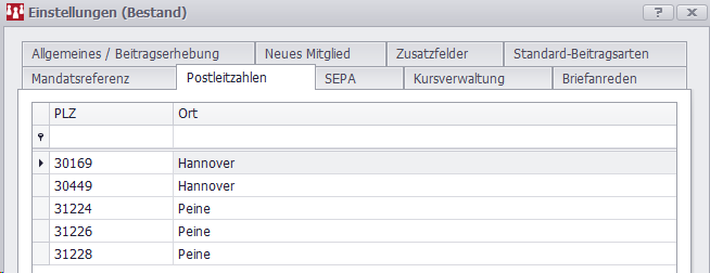 Sie können gespeichert PLZ bearbeiten.