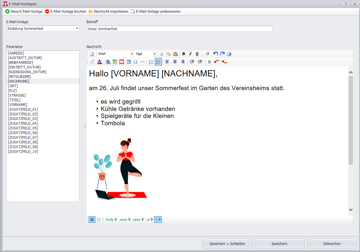 Die Änderungen werden gespeichert und das Fenster "E-Mail-Vorlagen" wird geschlossen.