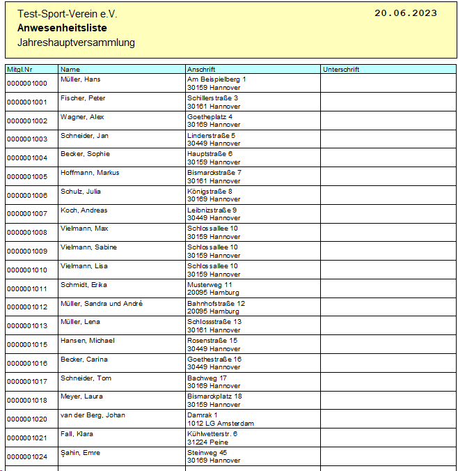 Mit Auslieferung von SPG-Verein erhalten Sie Muster von Listenlayouts. Sofern für die Listenausgabe ein neues oder abgewandeltes Layout gewünscht wird, ist zunächst unter der Funktion [Layout erstellen / ändern] die entsprechende Gestaltung vorzunehmen.