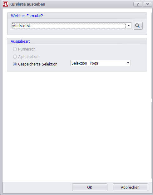 Hierzu ist im Formular "Kursdaten" ein Selektion über den Button "Kurs -> Selektion" zu erstellen.