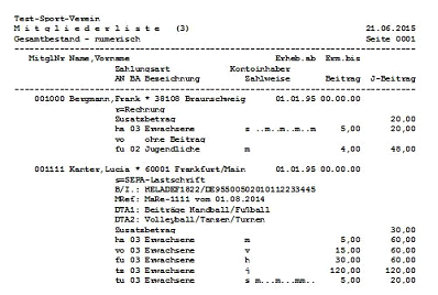 Die Mitgliederlisten stellen Arbeits- und Planungsunterlagen für die Verwaltung des Vereins (Mitgliederverwaltung, Liquiditätsplanung und Buchführung) zur Verfügung.