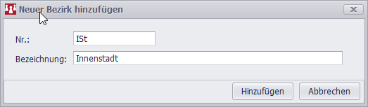 einen neuen Bezirk hinzuzufügen: