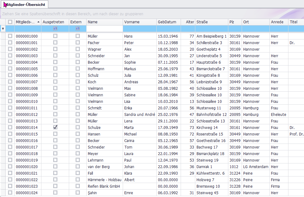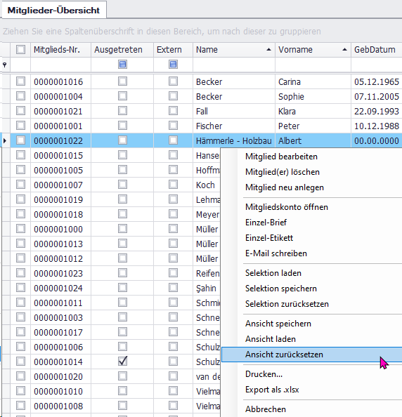 Klicken Sie dafür in der Mitglieder-Übersicht mit der rechten Maustaste auf "Ansicht zurücksetzen".