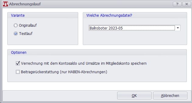 Der Abrechnungslauf kann jetzt durchgeführt werden (bitte Datensicherung vorher erstellen):