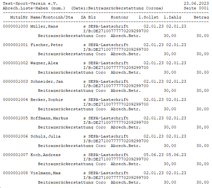 Eine Abrechnungsdatei kann sowohl Gutschriften (Haben) als auch Belastungen (Soll) enthalten. Daher ist dementsprechend eine getrennte Ausgabe der Abrechnungsliste-Soll und /-Haben vorgesehen und unter Listenart auszuwählen. Zur besseren Übersichtlichkeit kann die Zahlungsart eingeschränkt werden – per Default werden alle Arten ausgegeben.