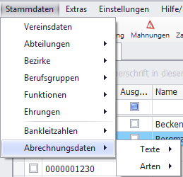 In diesem Menü können sowohl Abrechnungstexte (erklärende Textzeilen für die Abrechnung) als auch Abrechnungsarten (vorgegebene Abrechnungszeilen) hinterlegt werden.