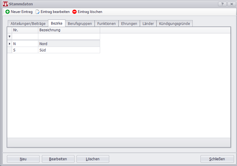 Sie können Änderungen an den Bezirken vornehmen. Durch Doppelklick auf einen Bezirk gelangen Sie in das Bearbeitungsfenster für den Bezirk.