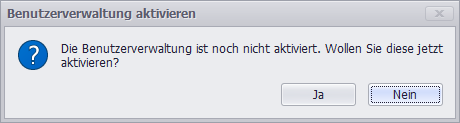 Mit einem Klick auf "Ja" wird die Benutzerverwaltung aktiviert, bei Klick auf "Nein" wird dieser Vorgang abgebrochen.