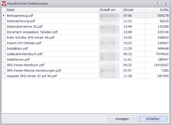 Sie bekommen die vorhandenen Handbücher angezeigt und können das gewünschte Handbuch durch Doppelklick oder Klick auf "Anzeigen" öffnen.
