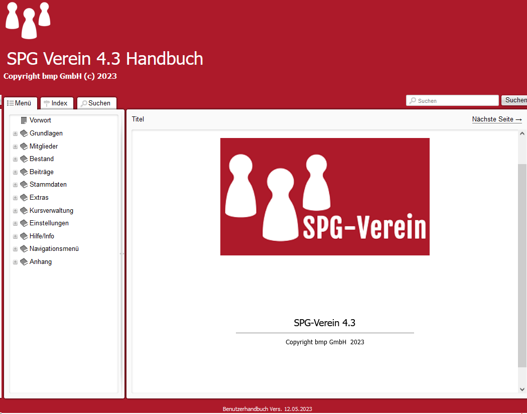 Bei Auswahl dieses Menüpunktes wird das Handbuch (Hilfe) von SPG-Verein 4 geöffnet.
