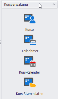 Ist in dem aktuellen Mandant die Kursverwaltung aktiviert, befindet sich in Navigationsmenü die Gruppe "Kursverwaltung":