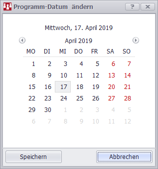 Wenn z.B. manuelle Zahlungen oder Umsätze mit einem vom PC-Datum unterschiedlichem Datum gespeichert werden sollen, dann kann über diesen Menüpunkt das programminterne Datum geändert werden.