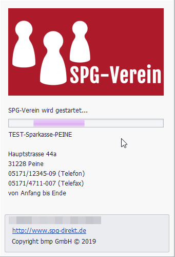 Das Eröffnungslogo von SPG-Verein 4 wird nach wenigen Augenblicken angezeigt. Auf diesem Startbild können Sie sofort Ihre Lizenzinformationen und die aktuelle Version von SPG-Verein ablesen.