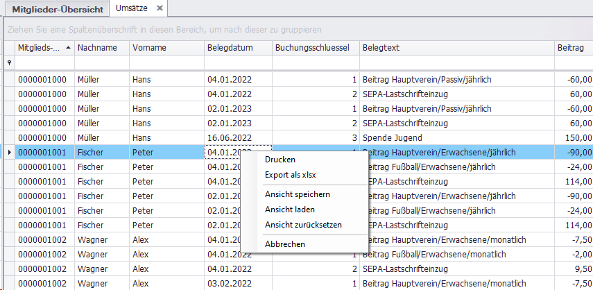 Es können die vorhandenen Zahlungen in Listenform ausgegeben werden.