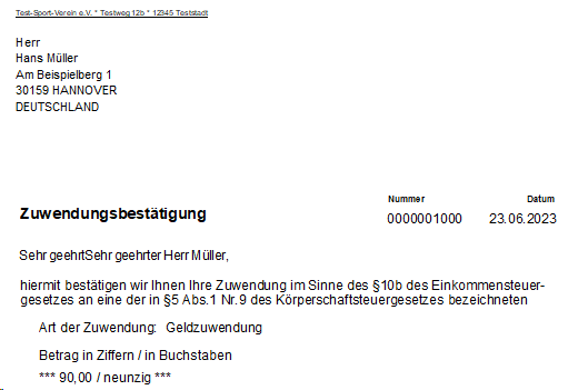 Der Benutzer hat hier - wie bekannt - die Wahlmöglichkeit bezüglich der Ausgabeart und des Dateiumfanges. Bei der Auswahl des Formulars über das einzeilige Listenfeld können nur bestimmte Formulare (z.B. 'zuwendg.for') genutzt werden.